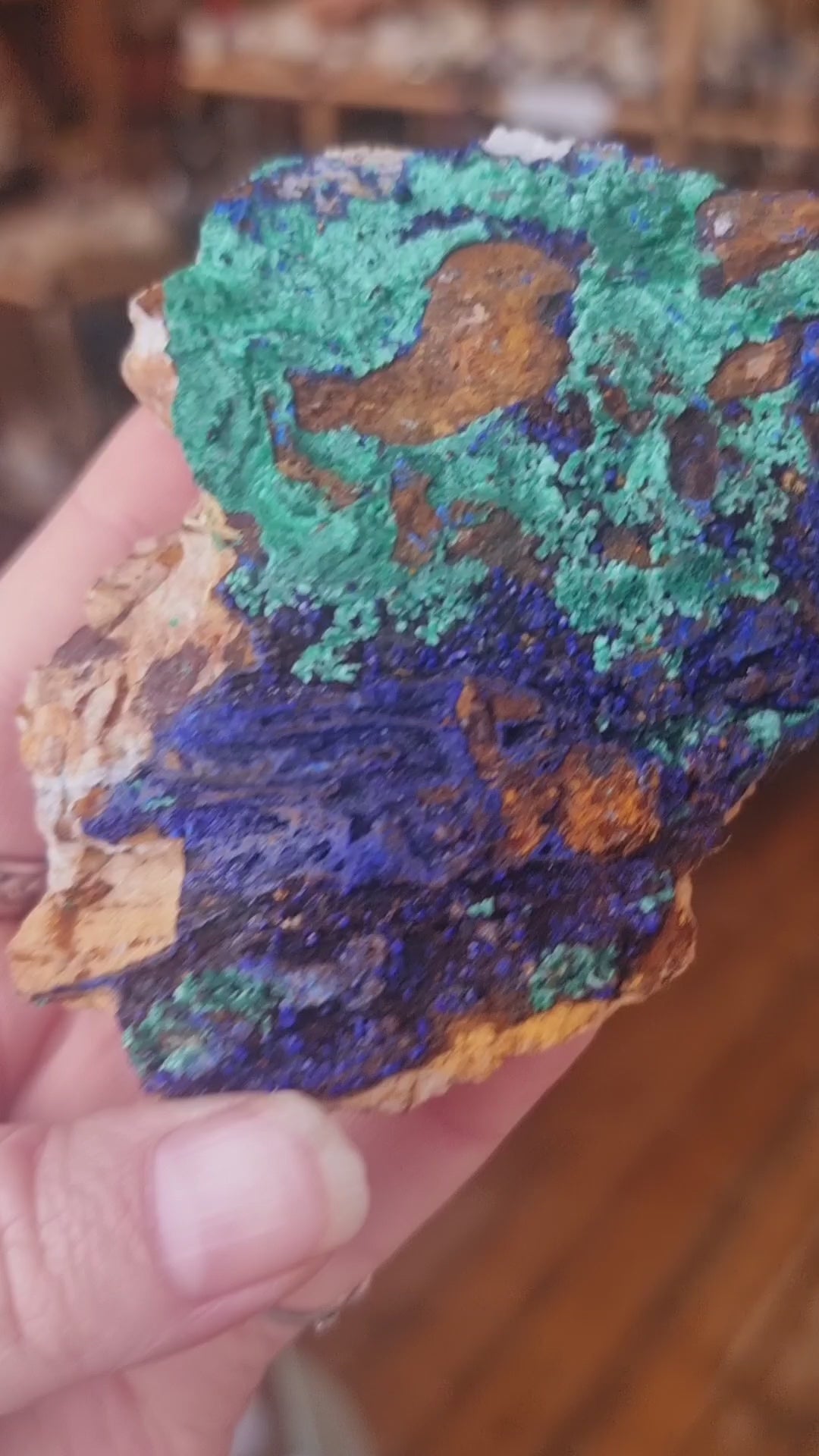 Azurite Malachite Slice combines the vibrant blues of Azurite with the soothing greens of Malachite. Its properties include promoting self-reflection and spiritual growth, while also providing relief from stress, confusion, and negative thoughts. Use this crystal to enhance your intuition and emotional well-being. It is also known for its healing properties for various physical ailments like kidney and thyroid issues, as well as aiding in digestion and managing diseases such as diabetes. Trust in Azurite Malachite Slice to bring a sense of love, compassion, and tranquility to your life.